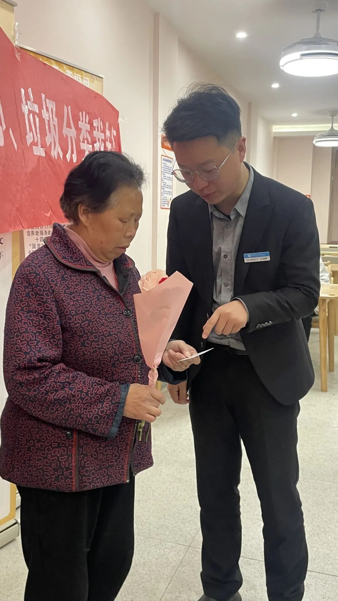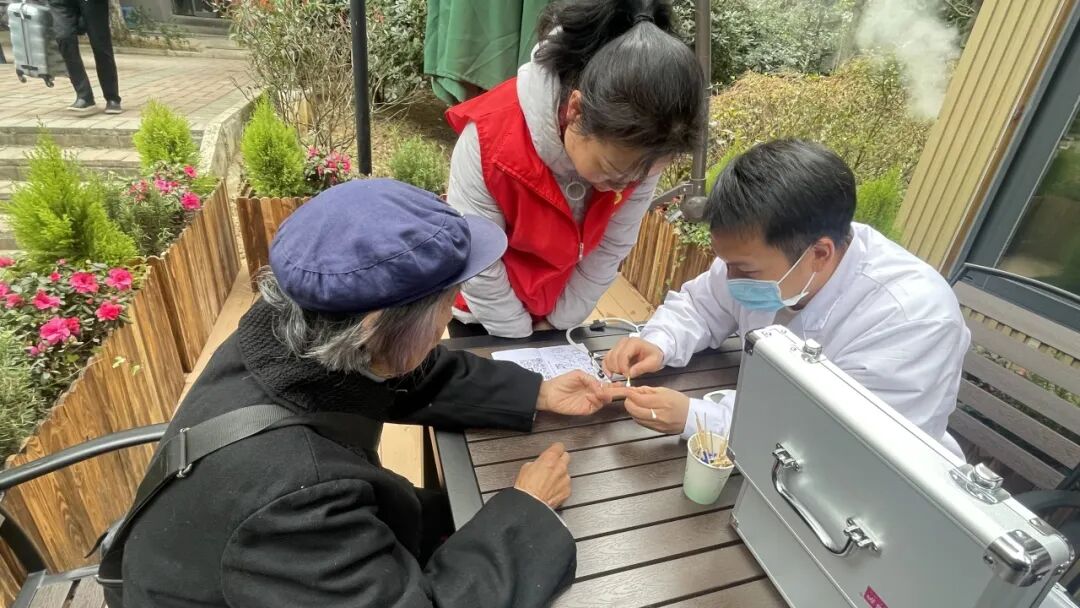 惠风和畅妍桃李,群芳竞秀抒风华。为庆祝“三·八”国际妇女节,增强女性自我保健意识,倡导健康生活方式,推广“医养结合”的社区居家养老服务模式,贵阳诚善助老观水路社区养老服务站、蟠桃宫社区养老服务站、红岩东郡社区养老服务站携手社区卫生服务中心、社区居委会、南明富民村镇银行举办“耆乐共聚,花样绽放” ——3·8妇女节义诊活动,以实际行动将医疗保健知识送进社区,将平安健康带到社区的老人身边,以温情送花的形式传达对社区妇女的美好祝愿。