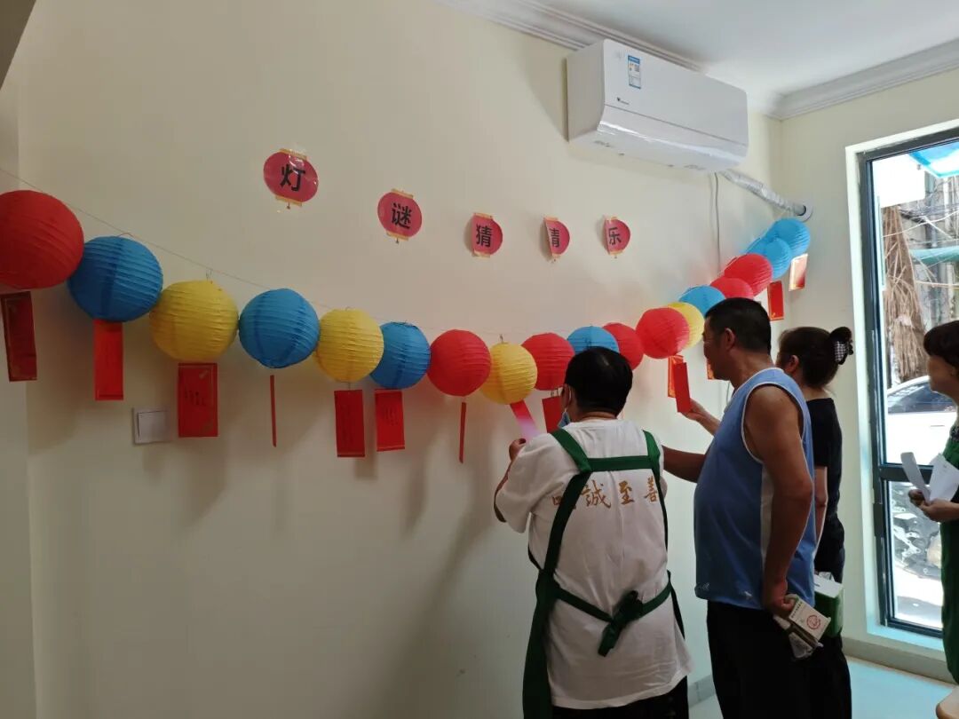 猜灯谜环节,谜面内容形式多样,涉及人文地理、风土人情、传统文化、社会主义核心价值观等多方面的知识,丰富多彩、妙趣横生。一张张写满灯谜的彩条吸引大家冥思苦想,时而独自揣摩,时而一起合作,时而联手合作解谜,热烈的答题气氛烘托着浓厚的中秋节气。