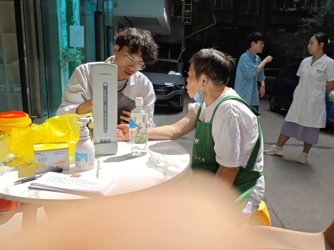 医护人员们早早来到社区,携带专业的医疗设备和器具,做好充足准备,以饱满的热情和认真负责的态度迎接每一位前来咨询和体检的居民。在社区志愿者的组织引导下,居民们有序开展检查。医务人员为前来义诊的居民免费进行了血压、血糖规等项目检测服务。细致地询问他们的身体状况、日常饮食和作息习惯,针对高血压、糖尿病等慢性常见疾病患者给予专业的治疗建议和用药指导,并为居民们普及健康知识,提醒大家要养成健康的生活方式,合理饮食、适量运动、保障睡眠,保持良好的心态,增强保健意识和疾病预防意识。