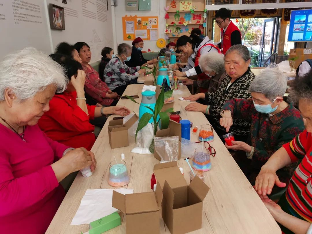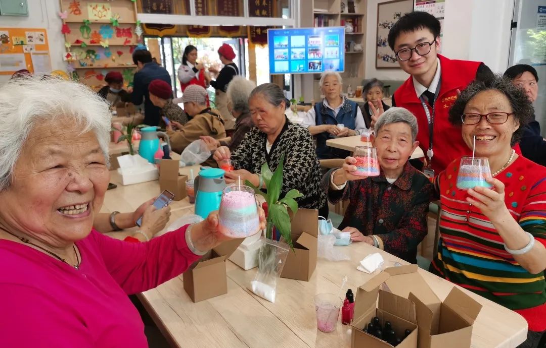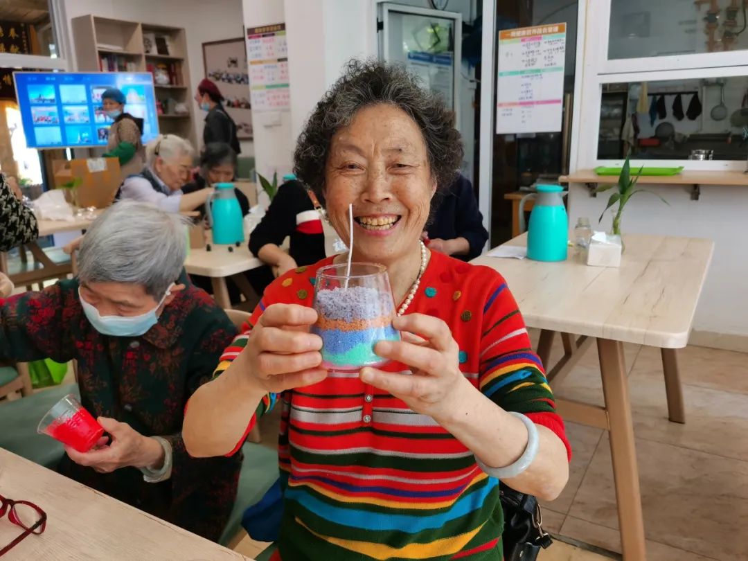 在这个过程中,不少老年人表示,这是他们第一次尝试制作沙画香薰蜡烛,感觉既新鲜又有趣。通过亲手制作,他们不仅学会了沙画香薰蜡烛的制作技巧,还感受到了香薰带来的宁静与舒适。老人们围坐在一起,手中捧着刚刚亲手制作完成的作品,互相展示欣赏着彼此的作品,现场赞美声此起彼伏,在欢声笑语中,也进一步拉近了彼此间的距离。