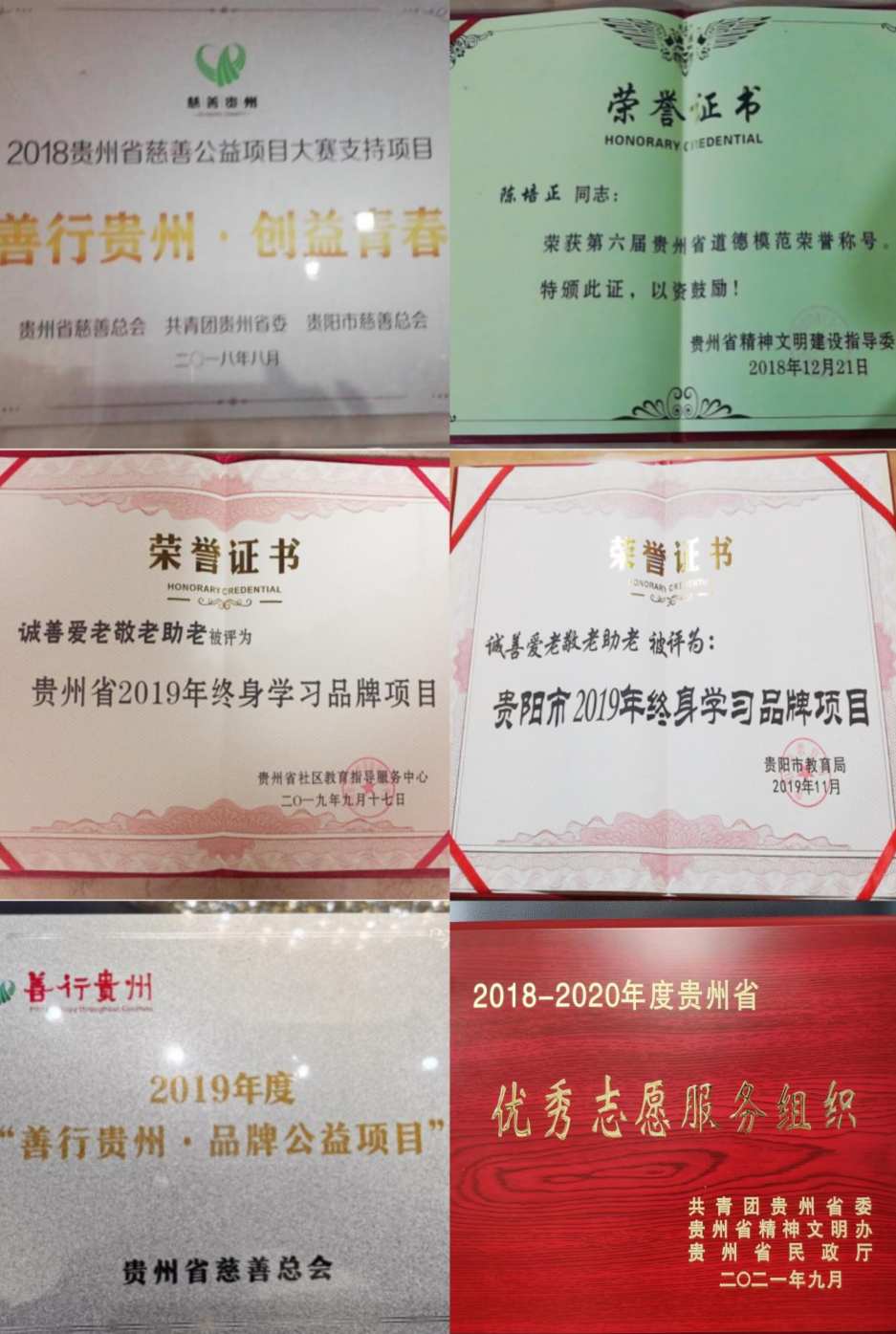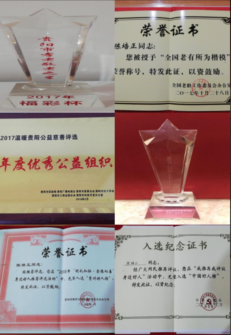 12、2018年6月,贵州省文明办发布2018年6月份贵州好人榜,贵阳诚善助老慈善公益服务中心名誉理事长陈培正代表本中心获得“孝老爱亲好人”称号。